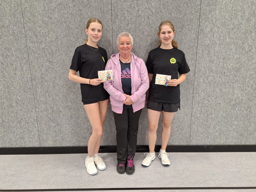 Der MTV Vienenburg hat erstmals eine Deutsche Meisterin im Crossminton in seinen Reihen. Bei den Titelkämpfen der weiblichen Jugend kam es dabei im Finale zu einem reinen Vienenburger Duell , das Tora Wedde gegen Carina Brunke für sich entschied. Herzlichen Glückwunsch an die beiden Spielerinnen. Sportwartin Sabine Ross gratulierte ihnen in einer Sportstunde im Namen des Vereins und überreichte beiden Mädels ein kleines Präsent.